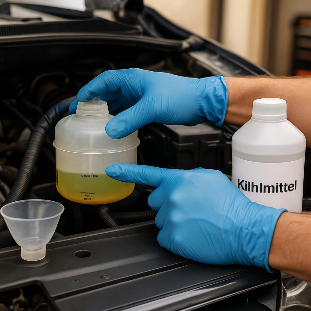 Viele einfache Prüfungen und eine Basis-Spülung können Sie selbst durchführen. Achten Sie auf Schutz: Kühlmittel ist giftig, tragen Sie Handschuhe und entsorgen Sie Altflüssigkeit korrekt.